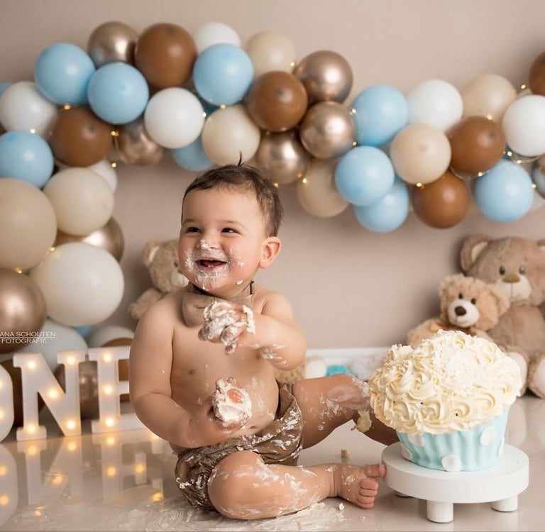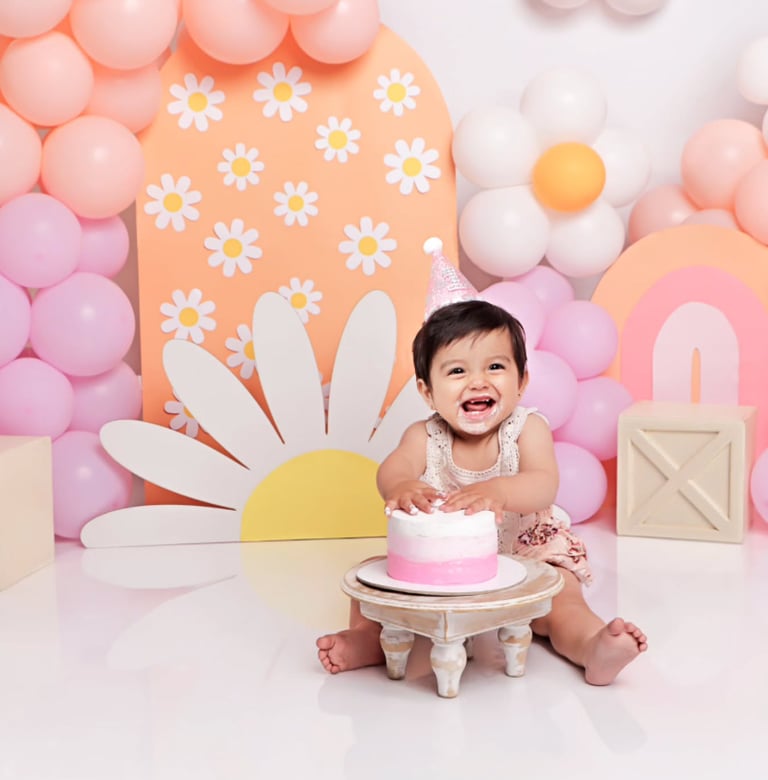Lo que más amamos de los CAKE SMASH es que son completamente personalizados. Creamos la temática que tú elijas para que todo combine con el estilo y la esencia de tu bebé.