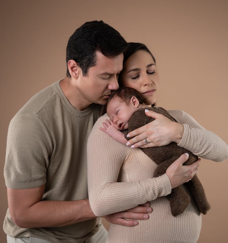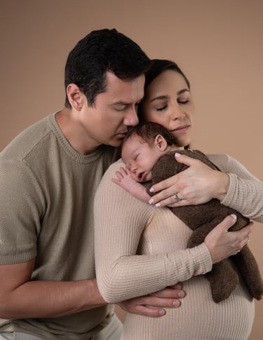 Sabemos que la llegada de un bebé es un momento de amor y unión. Por eso, nuestras sesiones —tanto de maternidad como newborn— incluyen fotos familiares. No es solo una sesión: es un recuerdo de su conexión.